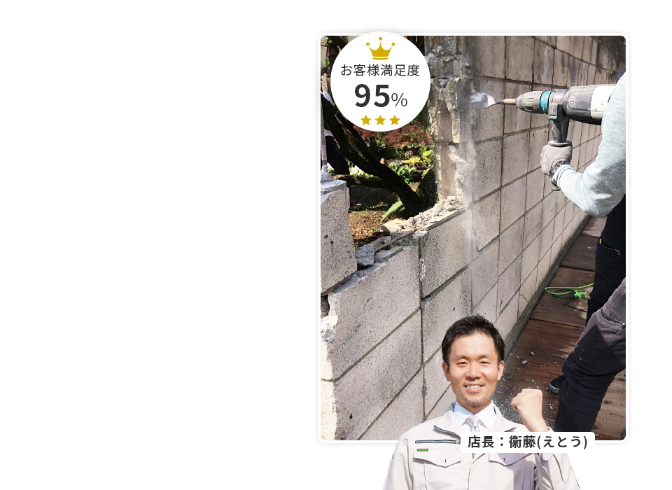 私たちは全国の職人と連携して、安全なブロック塀の解体・撤去を行っております。養生、粉じん対策、近隣への配慮、搬出・処分まで一括でお任せください!