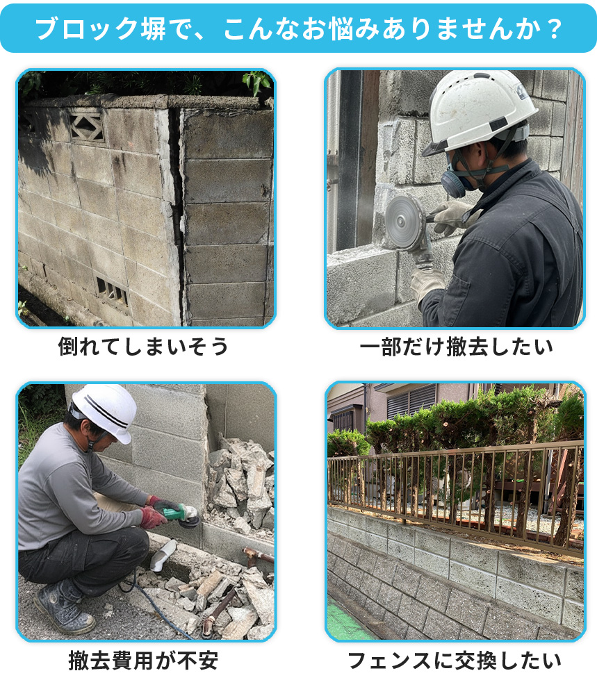 ブロック塀撤去は「いくらかかるのか分からない」と不安になりがちです。
