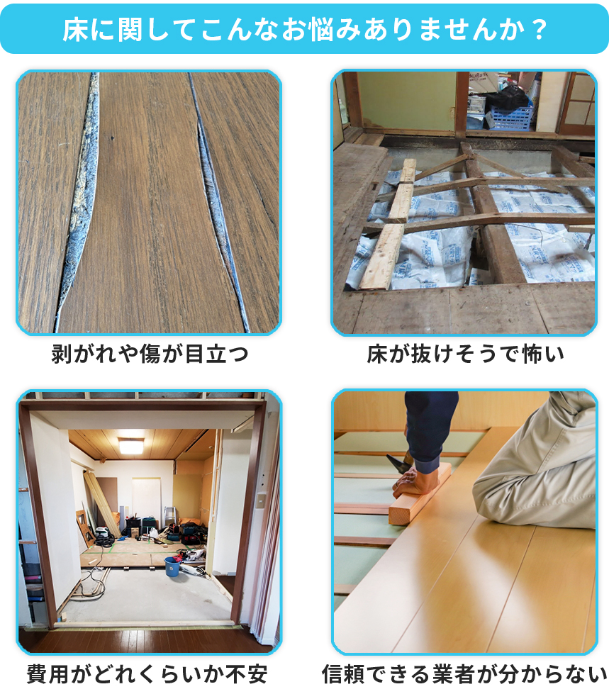 - ①床張り替えのプロが対応