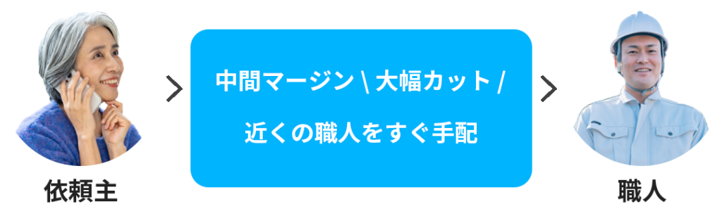 独自のシステム構築により依頼主と職人を直接おつなぎし、どこよりも早く、そして納得のコスパを実現しております。